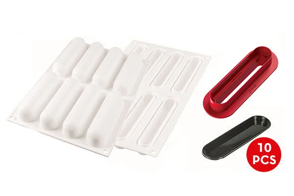 Una forma classica e intramontabile che si presta a svariate declinazioni in pasticceria. Lo stampo Fingers75 di Silikomart Professional è composto da 8 cavità da 75 ml ciascuna ed è stato ideato per realizzare delle preparazioni eleganti e dal fascino senza tempo. In dotazione dieci piattini per una perfetta presentazione finale e un funzionale tagliapasta in plastica che permette di realizzare originali inserti e/o basi d’appoggio che si adattano perfettamente alle forme dello stampo per preparazioni da assaporare anche con lo sguardo.